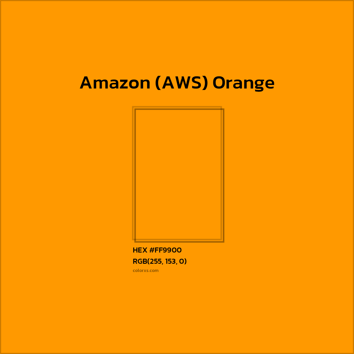 Amazon (AWS) Orange color belongs to the Orange color family (hue). The hexadecimal color code(color number) for Amazon (AWS) Orange is #FF9900, and the RGB color code is RGB(255, 153, 0).