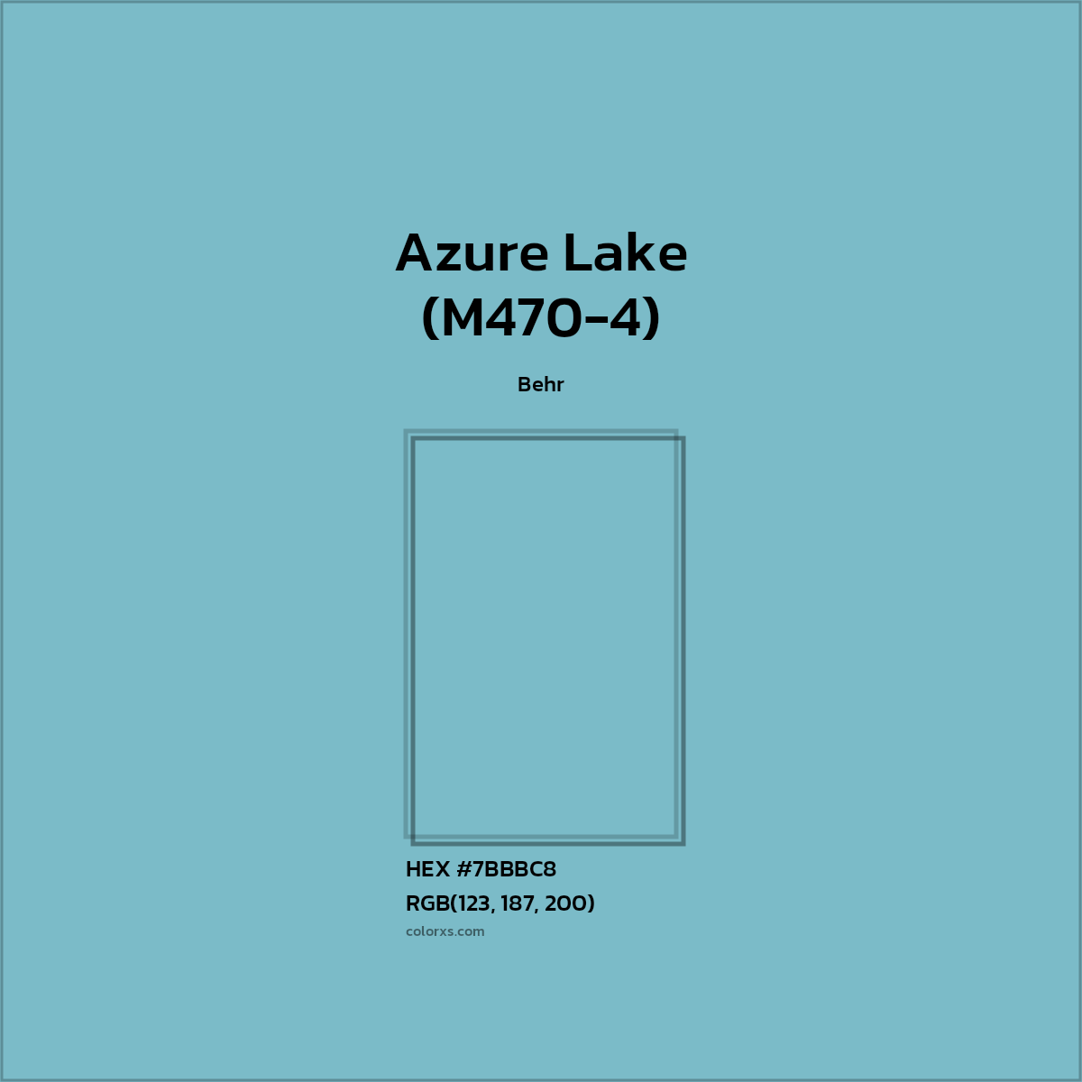 Azure Lake (M470-4) color belongs to the Blue color family (hue). The hexadecimal color code(color number) for Azure Lake (M470-4) is #7BBBC8, and the RGB color code is RGB(123, 187, 200).