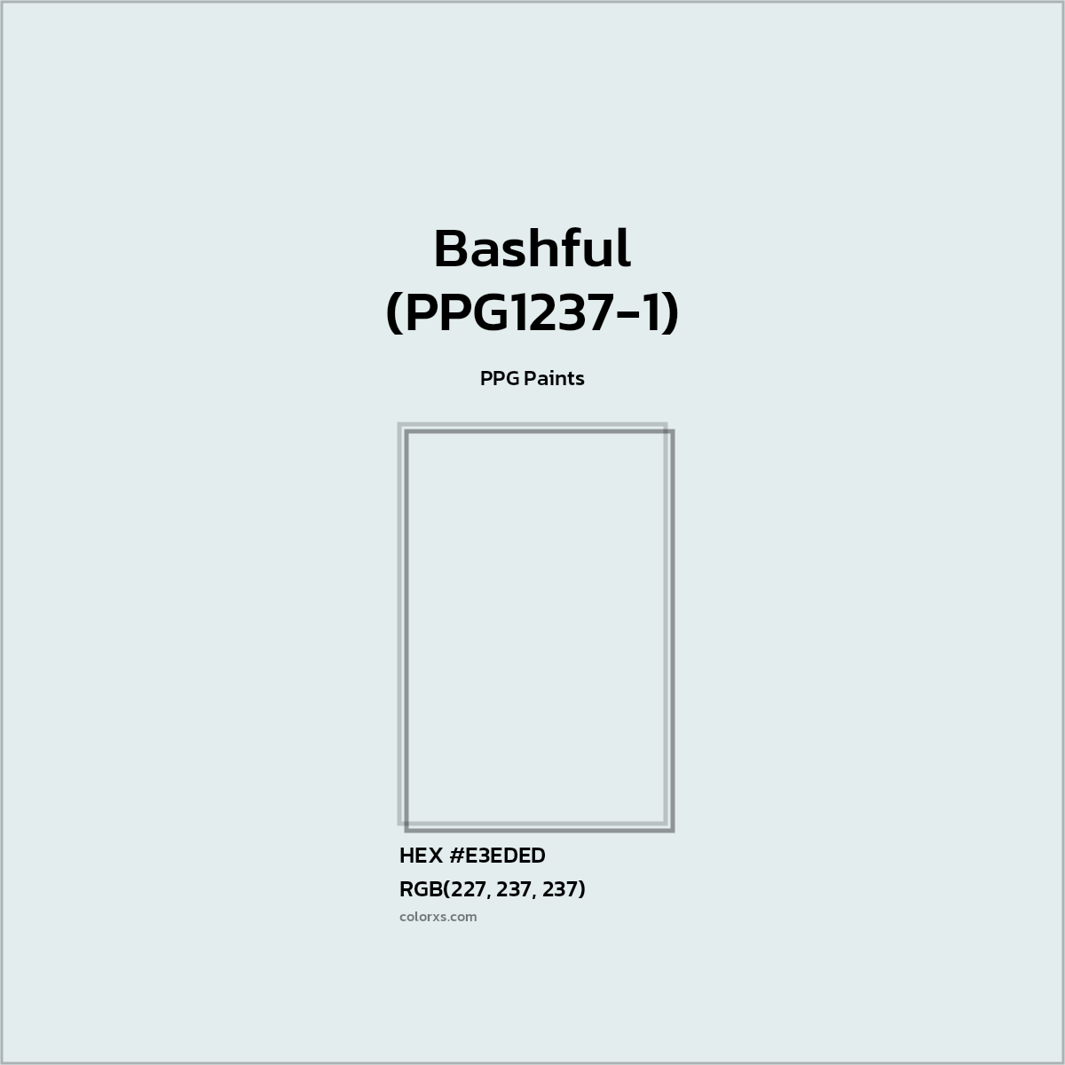 Bashful (PPG1237-1) color belongs to the Blue color family (hue). The hexadecimal color code(color number) for Bashful (PPG1237-1) is #E3EDED, and the RGB color code is RGB(227, 237, 237).