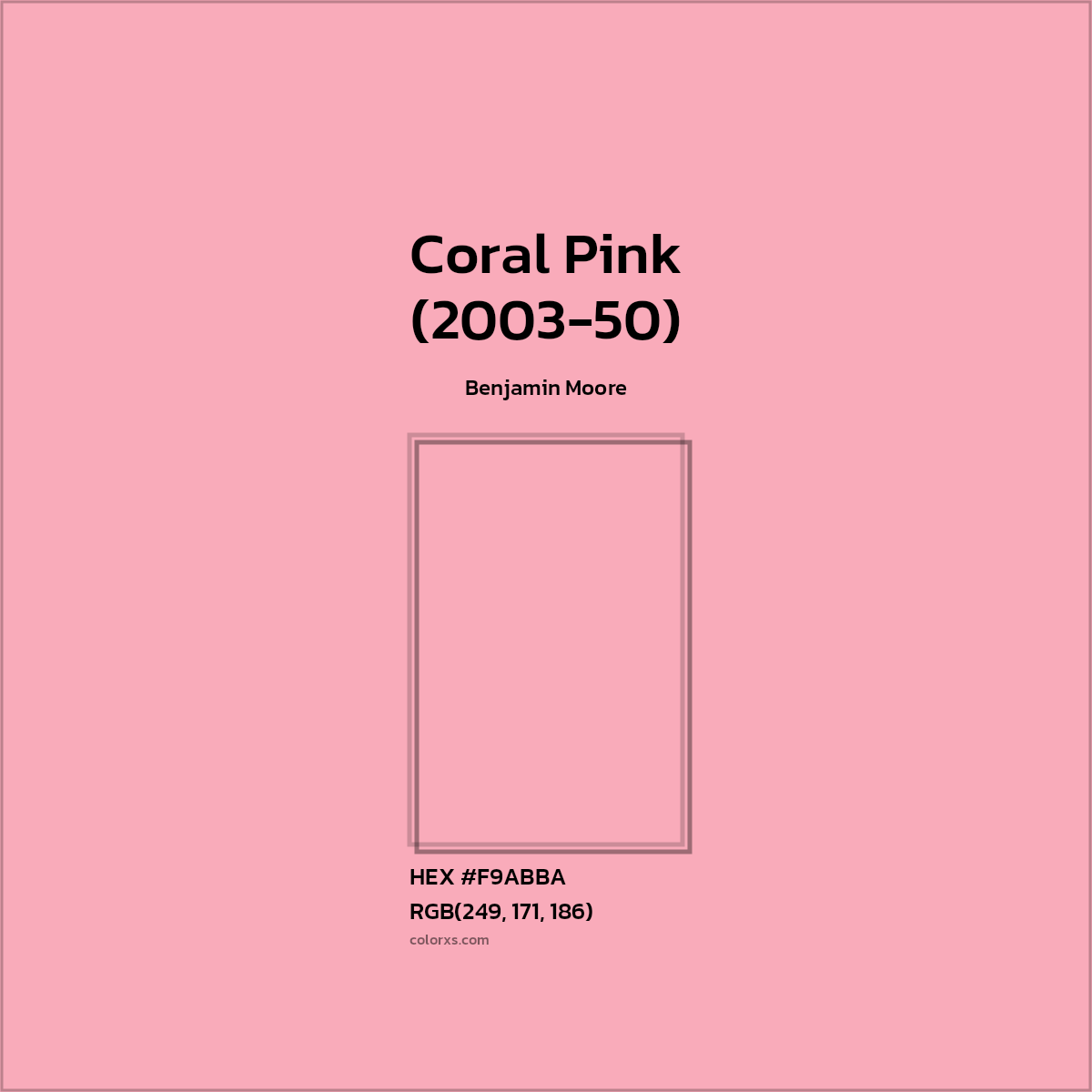 Coral Pink (2003-50) similar/equivalent paint from Benjamin Moore. Conversion of Coral Pink (2003-50) to Benjamin Moore