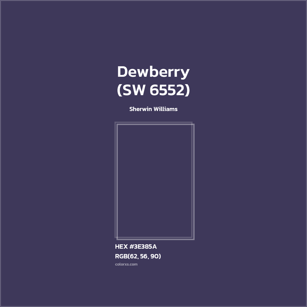 Dewberry (SW 6552) color belongs to the Purple color family (hue). The hexadecimal color code(color number) for Dewberry (SW 6552) is #3E385A, and the RGB color code is RGB(62, 56, 90).