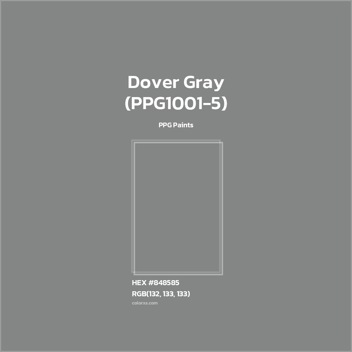 Dover Gray (PPG1001-5) color belongs to the Neutral color family (hue). The hexadecimal color code(color number) for Dover Gray (PPG1001-5) is #848585, and the RGB color code is RGB(132, 133, 133).