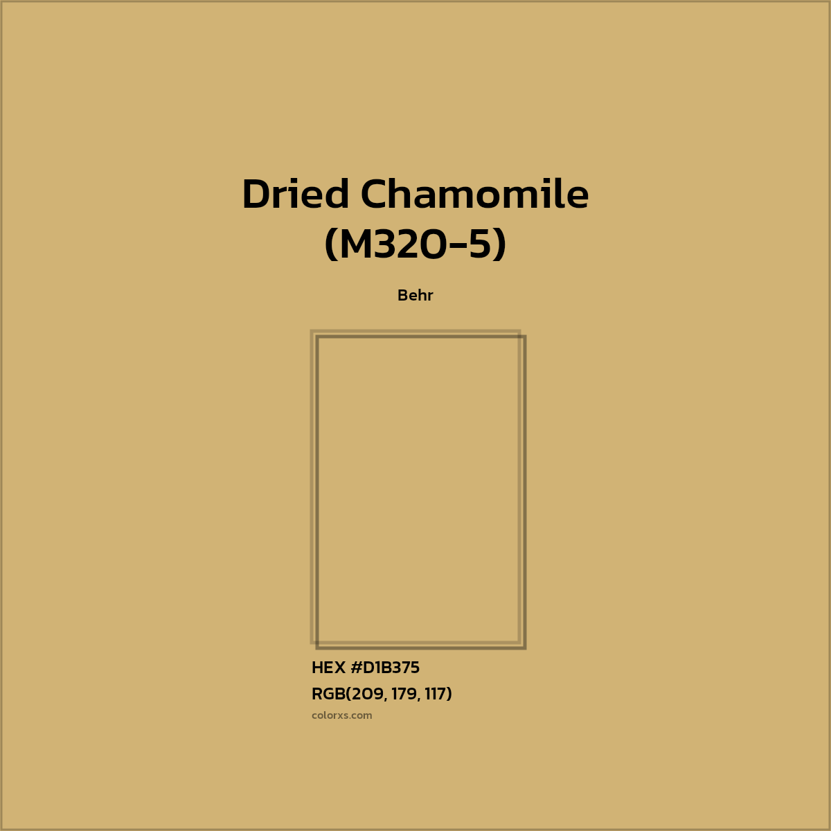 Dried Chamomile (M320-5) color belongs to the Yellow color family (hue). The hexadecimal color code(color number) for Dried Chamomile (M320-5) is #D1B375, and the RGB color code is RGB(209, 179, 117).
