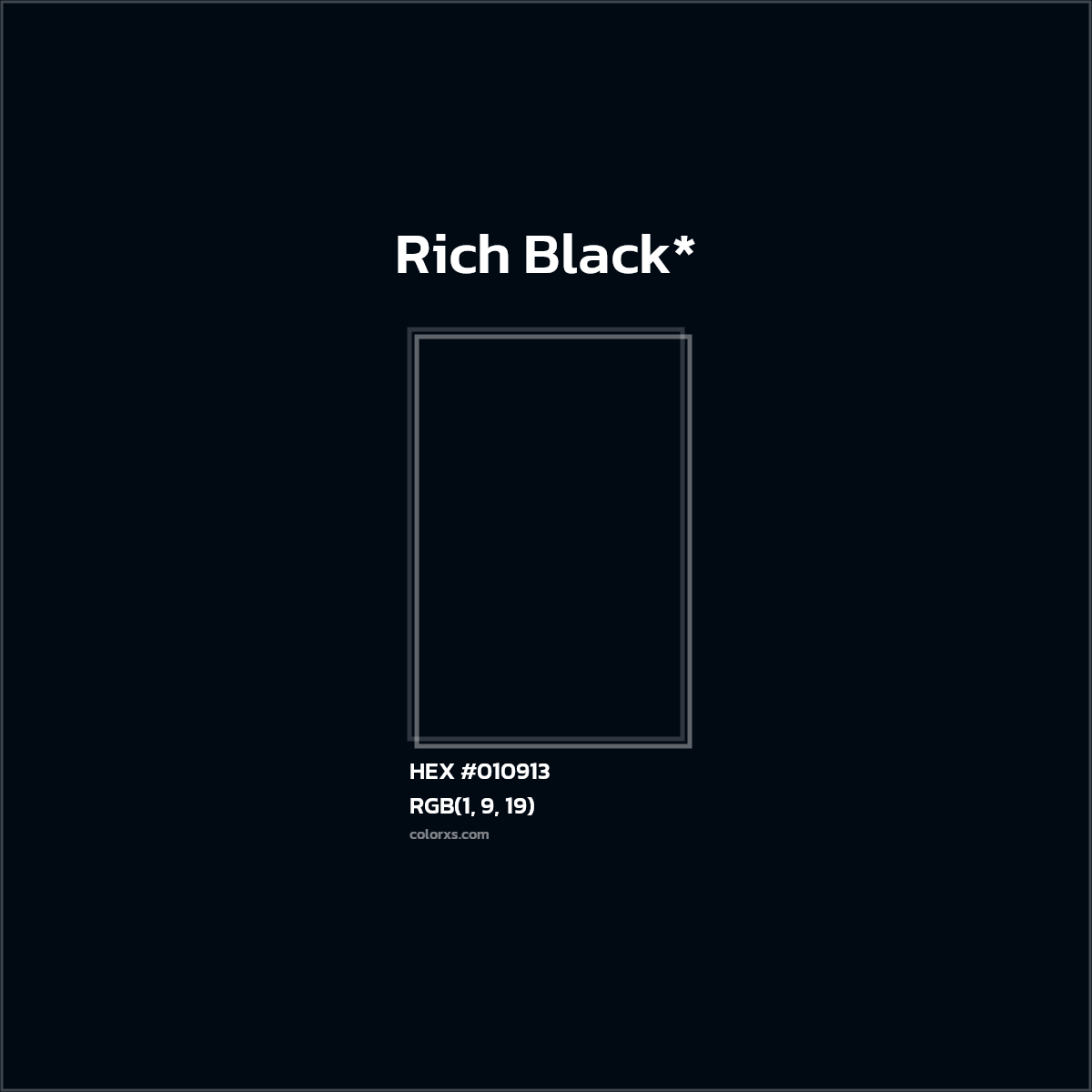 HEX #010913 color codes / color number / color space conversions - RGBA, HSL, HSV/HSB, HYZ, CMY, HWB, RYB
