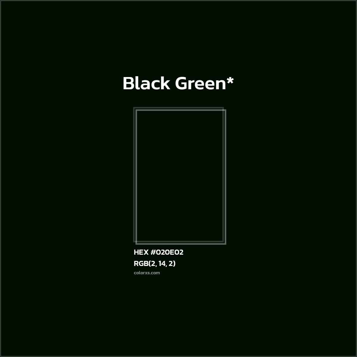 HEX #020E02 color codes / color number / color space conversions - RGBA, HSL, HSV/HSB, HYZ, CMY, HWB, RYB