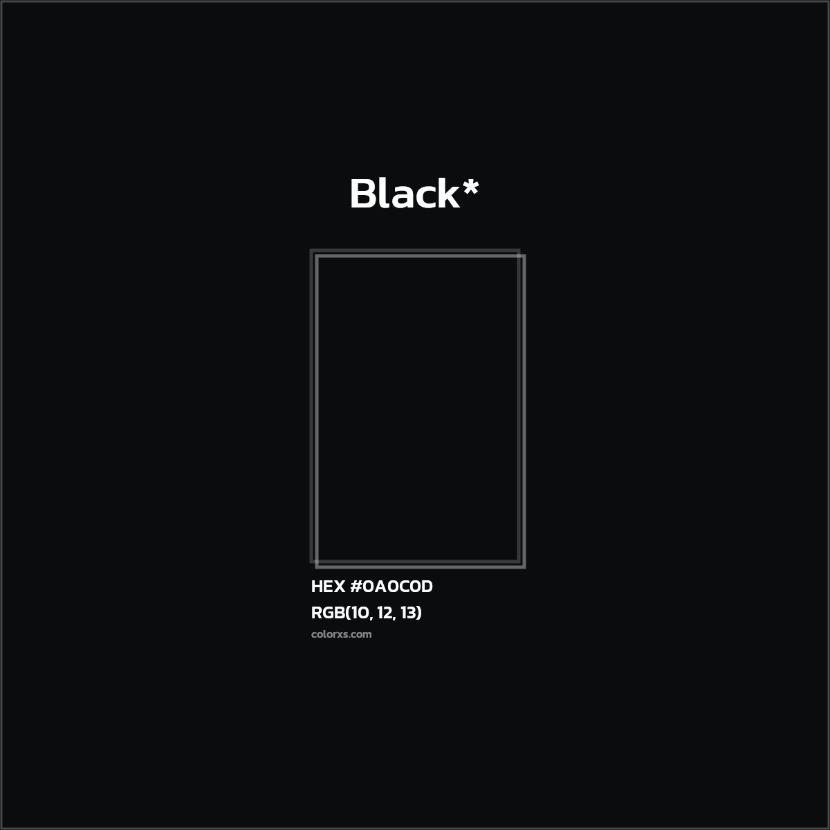 Hex color 0A0C0D similar/equivalent paint from Benjamin Moore. Conversion of hex #0A0C0D to Benjamin Moore