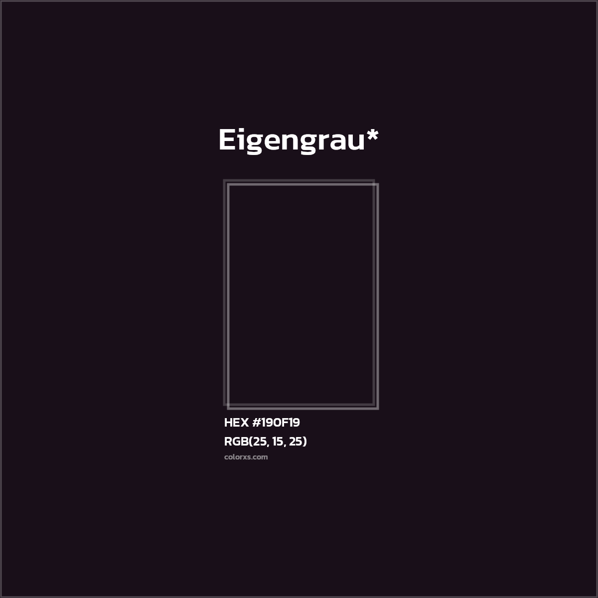 HEX #190F19 color codes / color number / color space conversions - RGBA, HSL, HSV/HSB, HYZ, CMY, HWB, RYB