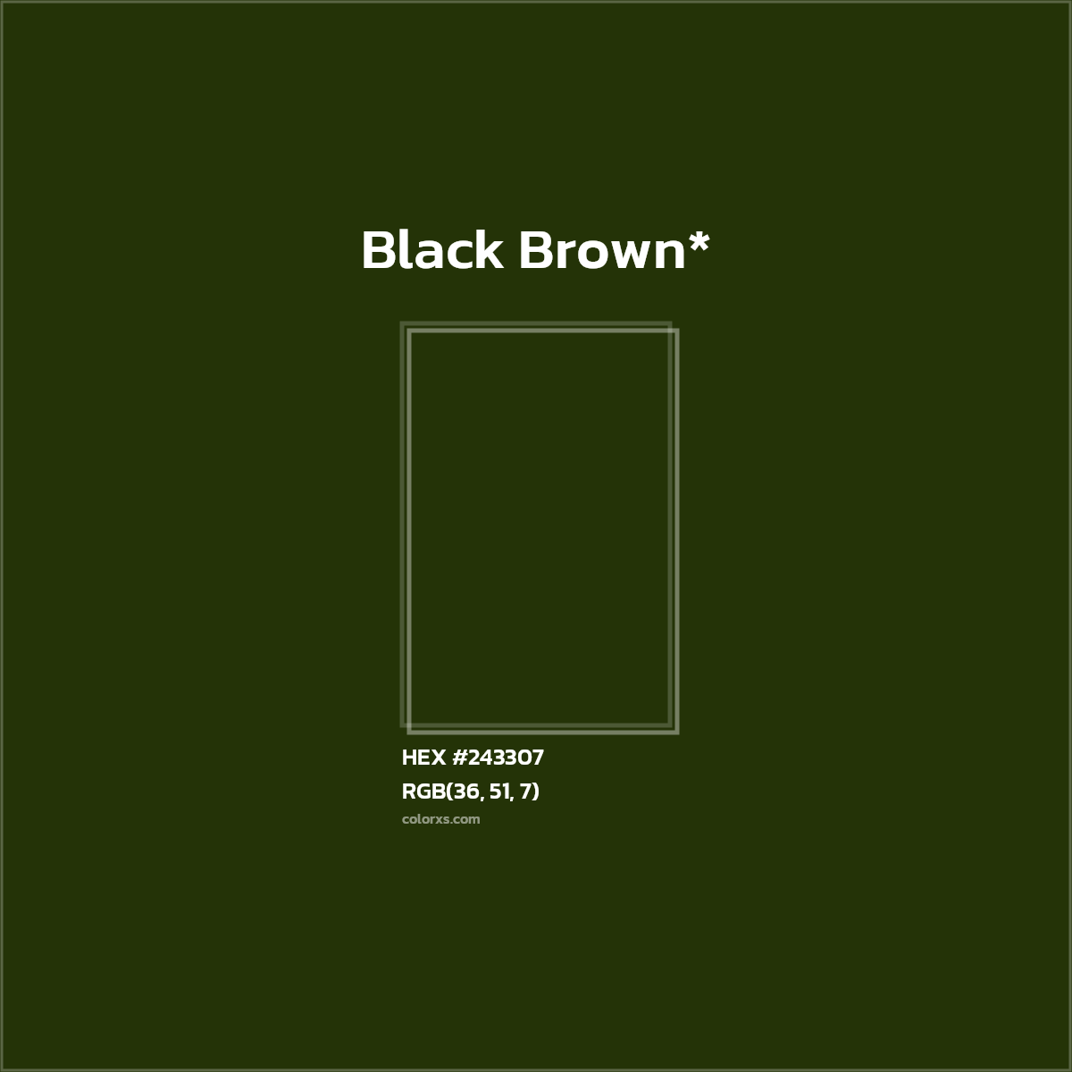 | RGB Color Code: | RGB(36, 51, 7) |
