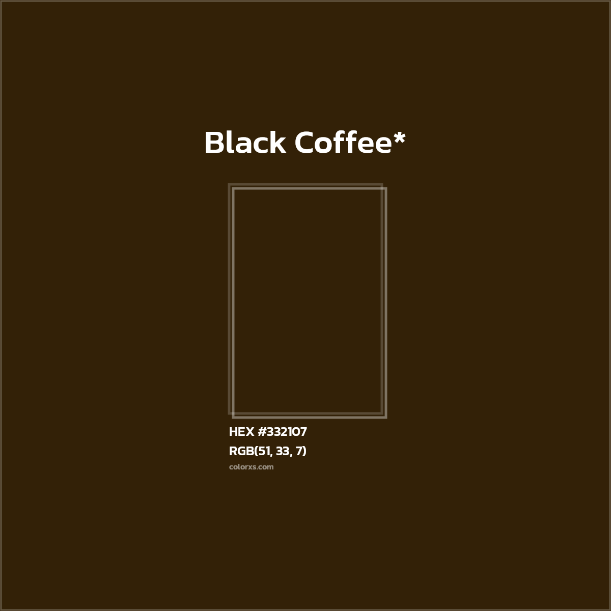 HEX #332107 color codes / color number / color space conversions - RGBA, HSL, HSV/HSB, HYZ, CMY, HWB, RYB