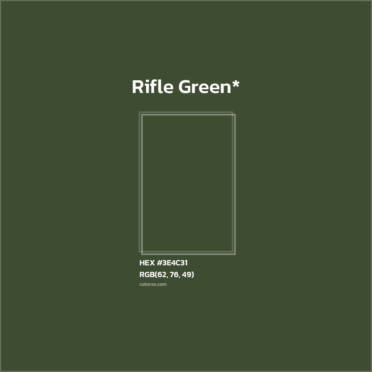 | RGB Color Code: | RGB(62, 76, 49) |