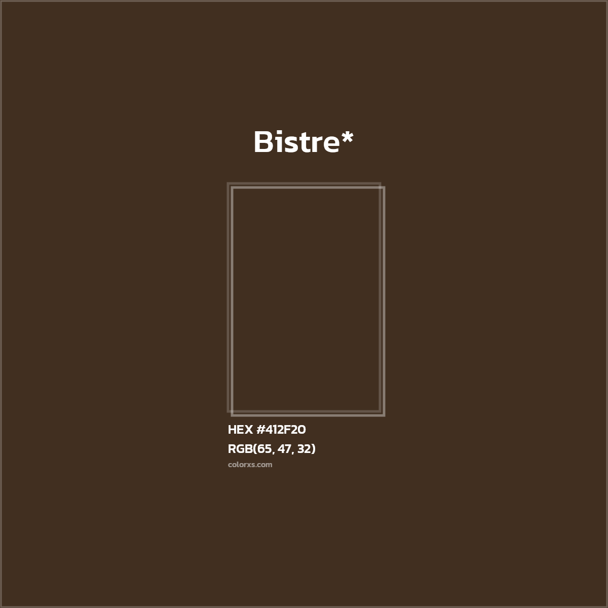 HEX #412F20 color codes / color number / color space conversions - RGBA, HSL, HSV/HSB, HYZ, CMY, HWB, RYB