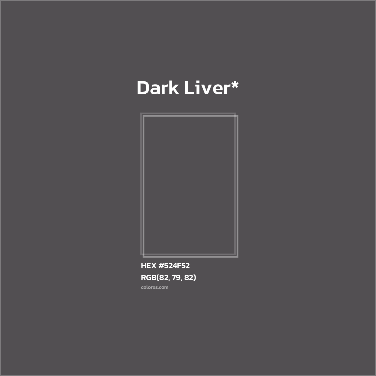 HEX #524F52 color codes / color number / color space conversions - RGBA, HSL, HSV/HSB, HYZ, CMY, HWB, RYB