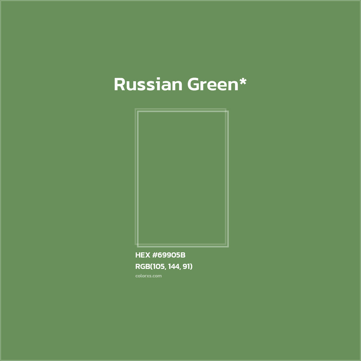 The RGB color code for color number #69905B is RGB(105, 144, 91). In the RGB color model, #69905B has a red value of 105, a green value of 144, and a blue value of 91. The CMYK color model (also known as process color, used in color printing) comprises 27.1% cyan, 0.0% magenta, 36.8% yellow, and 43.5% key (black). The HSL color scale has a hue of 104.2° (degrees), 22.6 % saturation, and 46.1 % lightness. In the HSB/HSV color space, #69905B has a hue of 104.2° (degrees), 36.8 % saturation and 56.5 % brightness/value.
