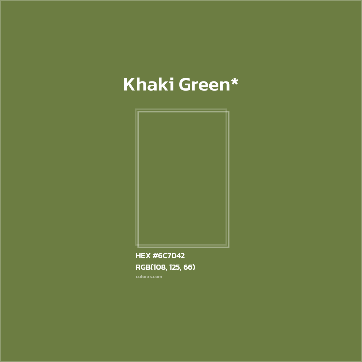 The RGB color code for color number #6C7D42 is RGB(108, 125, 66). In the RGB color model, #6C7D42 has a red value of 108, a green value of 125, and a blue value of 66. The CMYK color model (also known as process color, used in color printing) comprises 13.6% cyan, 0.0% magenta, 47.2% yellow, and 51.0% key (black). The HSL color scale has a hue of 77.3° (degrees), 30.9 % saturation, and 37.5 % lightness. In the HSB/HSV color space, #6C7D42 has a hue of 77.3° (degrees), 47.2 % saturation and 49.0 % brightness/value.