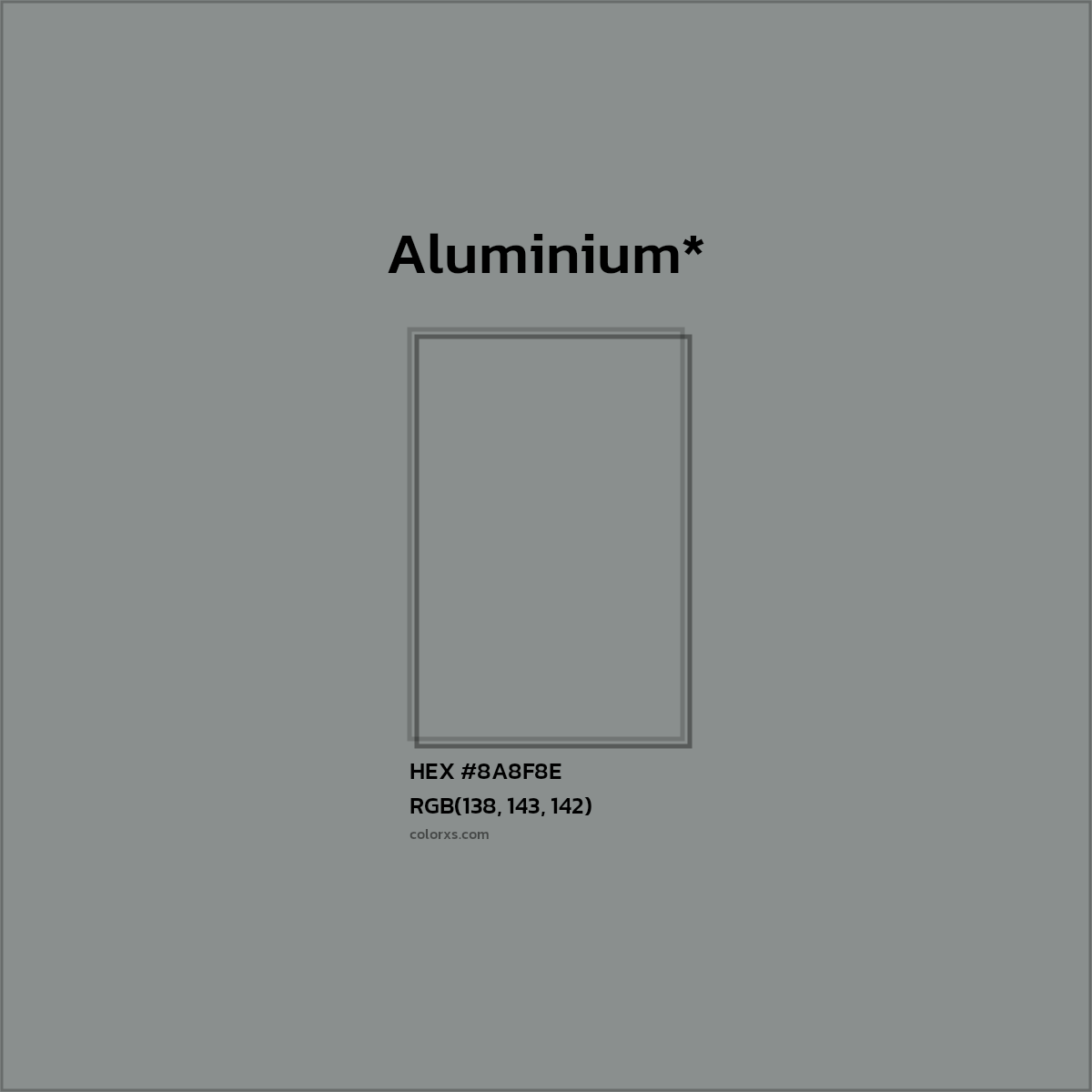 The RGB color code for color number #8A8F8E is RGB(138, 143, 142). In the RGB color model, #8A8F8E has a red value of 138, a green value of 143, and a blue value of 142. The CMYK color model (also known as process color, used in color printing) comprises 3.5% cyan, 0.0% magenta, 0.7% yellow, and 43.9% key (black). The HSL color scale has a hue of 168° (degrees), 2.2 % saturation, and 55.1 % lightness. In the HSB/HSV color space, #8A8F8E has a hue of 168° (degrees), 3.5 % saturation and 56.1 % brightness/value.