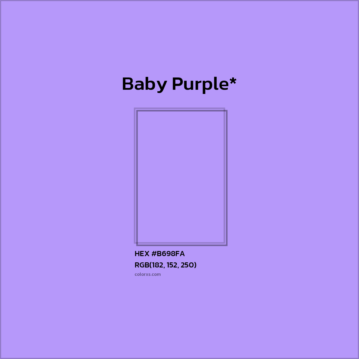 Hex color B698FA similar/equivalent paint from Benjamin Moore. Conversion of hex #B698FA to Benjamin Moore