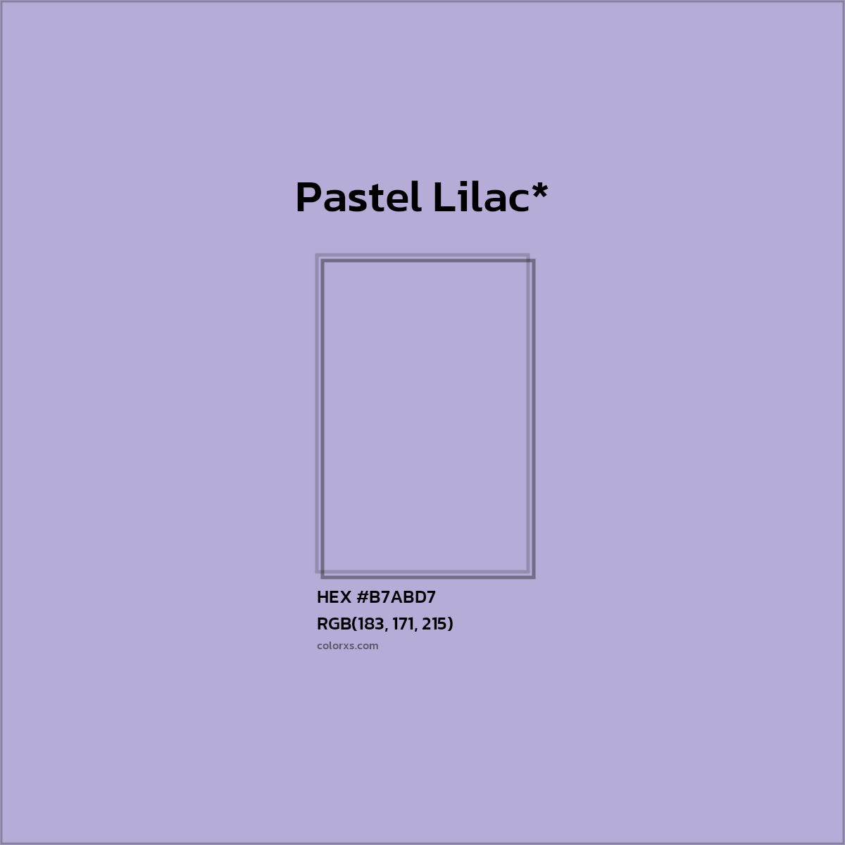 The RGB color code for color number #B7ABD7 is RGB(183, 171, 215). In the RGB color model, #B7ABD7 has a red value of 183, a green value of 171, and a blue value of 215. The CMYK color model (also known as process color, used in color printing) comprises 14.9% cyan, 20.5% magenta, 0.0% yellow, and 15.7% key (black). The HSL color scale has a hue of 256.4° (degrees), 35.5 % saturation, and 75.7 % lightness. In the HSB/HSV color space, #B7ABD7 has a hue of 256.4° (degrees), 20.5 % saturation and 84.3 % brightness/value.