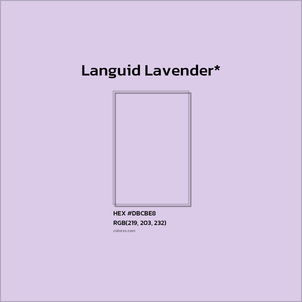 Hex color DBCBE8 similar/equivalent paint from Benjamin Moore. Conversion of hex #DBCBE8 to Benjamin Moore