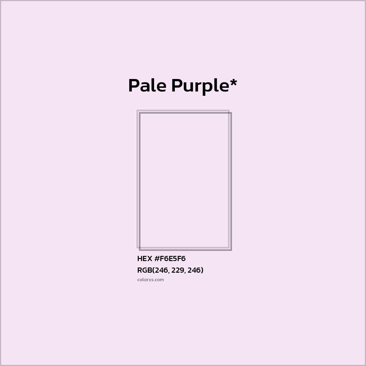 The RGB color code for color number #F6E5F6 is RGB(246, 229, 246). In the RGB color model, #F6E5F6 has a red value of 246, a green value of 229, and a blue value of 246. The CMYK color model (also known as process color, used in color printing) comprises 0.0% cyan, 6.9% magenta, 0.0% yellow, and 3.5% key (black). The HSL color scale has a hue of 300° (degrees), 48.6 % saturation, and 93.1 % lightness. In the HSB/HSV color space, #F6E5F6 has a hue of 300° (degrees), 6.9 % saturation and 96.5 % brightness/value.