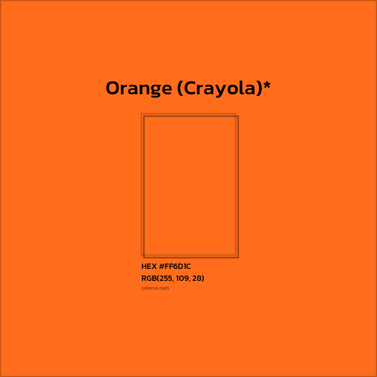 Hex color FF6D1C similar/equivalent paint from Benjamin Moore. Conversion of hex #FF6D1C to Benjamin Moore