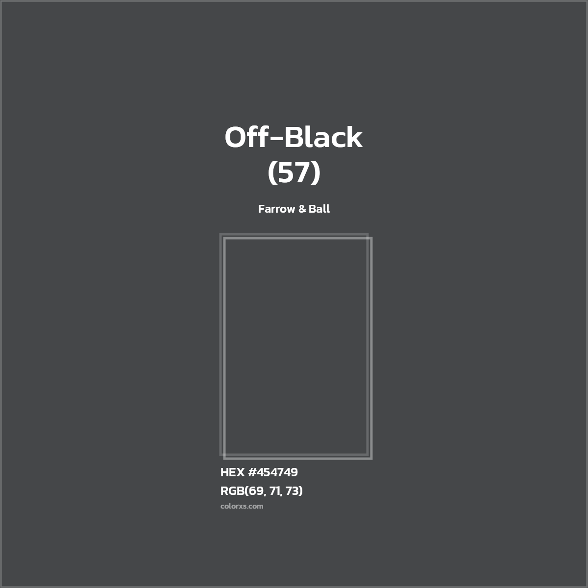 Off-Black (57) (Paint - Farrow & Ball) color codes / color number / color space conversions - HEX, RGBA, CMYK, HSL, HSV/HSB, HYZ, CMY, HWB, RYB