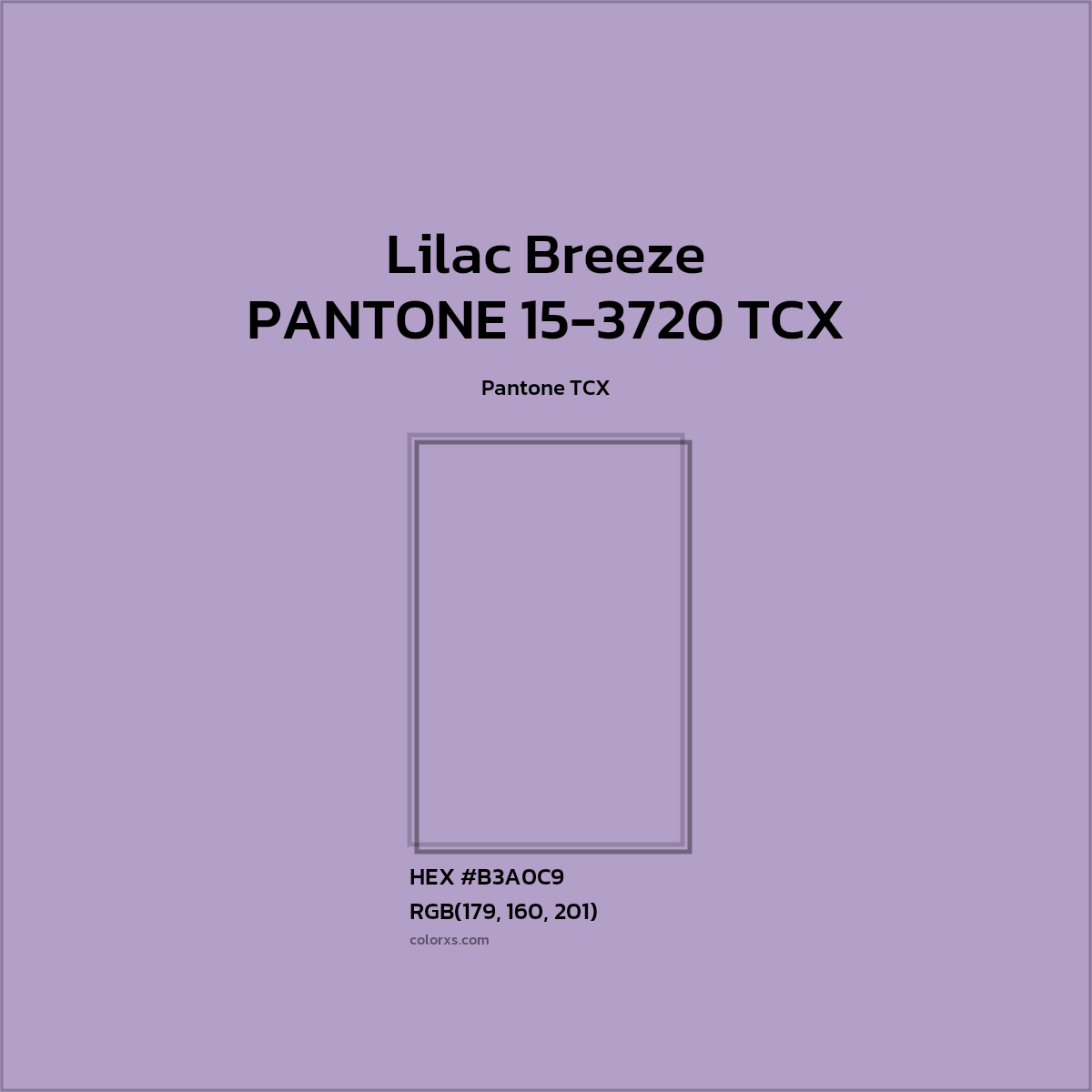 PANTONE 15-3720 TCX - Lilac Breeze color belongs to the Violet color family (hue). The hexadecimal color code(color number) for PANTONE 15-3720 TCX - Lilac Breeze is #B5A0C9, and the RGB color code is RGB(181, 160, 201).