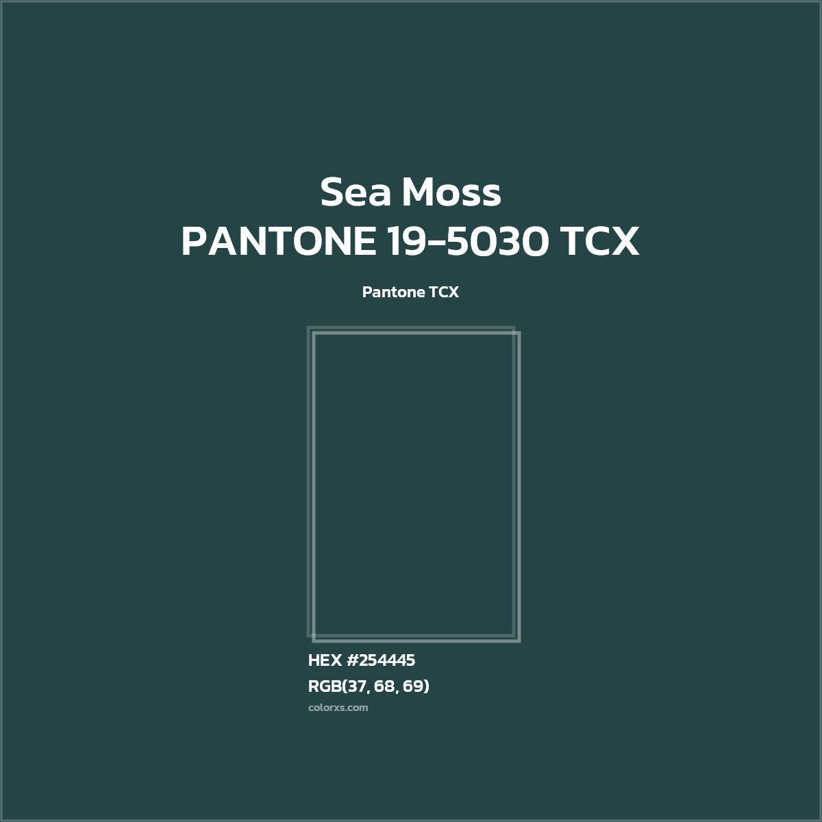 The hexadecimal color code(color number) for PANTONE 19-5030 TCX - Sea Moss is #254445, and the RGB color code is RGB(37, 68, 69).