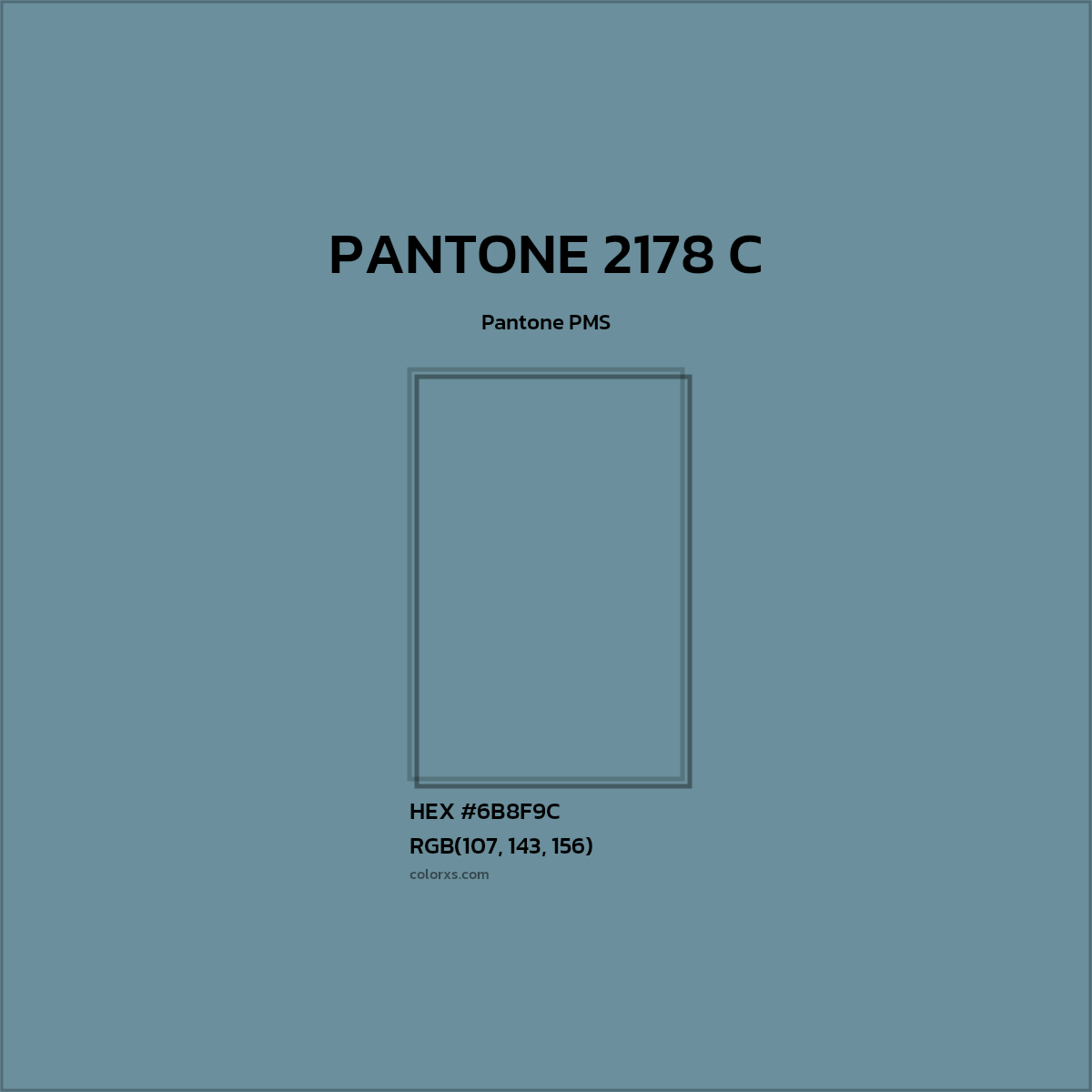 The hexadecimal color code(color number) for PANTONE 2178 C is #6B8F9C, and the RGB color code is RGB(107, 143, 156).