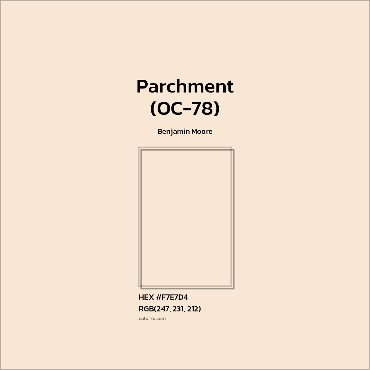 Parchment (OC-78) similar/equivalent paint from Benjamin Moore. Conversion of Parchment (OC-78) to Benjamin Moore