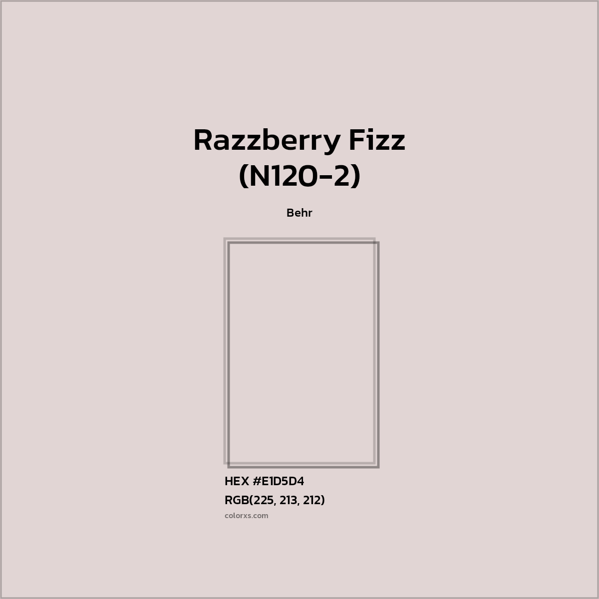 Razzberry Fizz (N120-2) color belongs to the Neutral color family (hue). The hexadecimal color code(color number) for Razzberry Fizz (N120-2) is #E1D5D4, and the RGB color code is RGB(225, 213, 212).