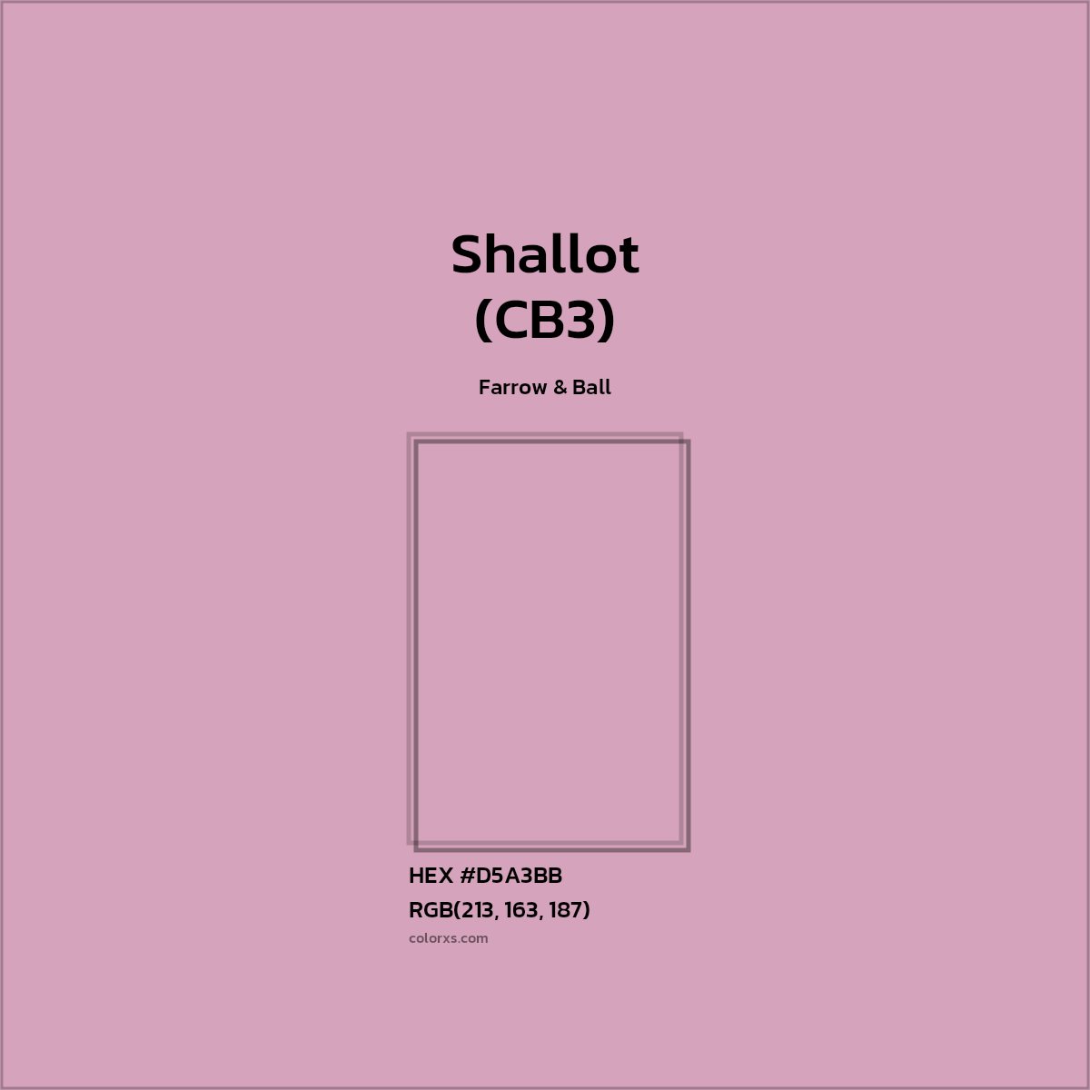 Shallot (CB3) color belongs to the Pink color family (hue). The hexadecimal color code(color number) for Shallot (CB3) is #D5A3BB, and the RGB color code is RGB(213, 163, 187).