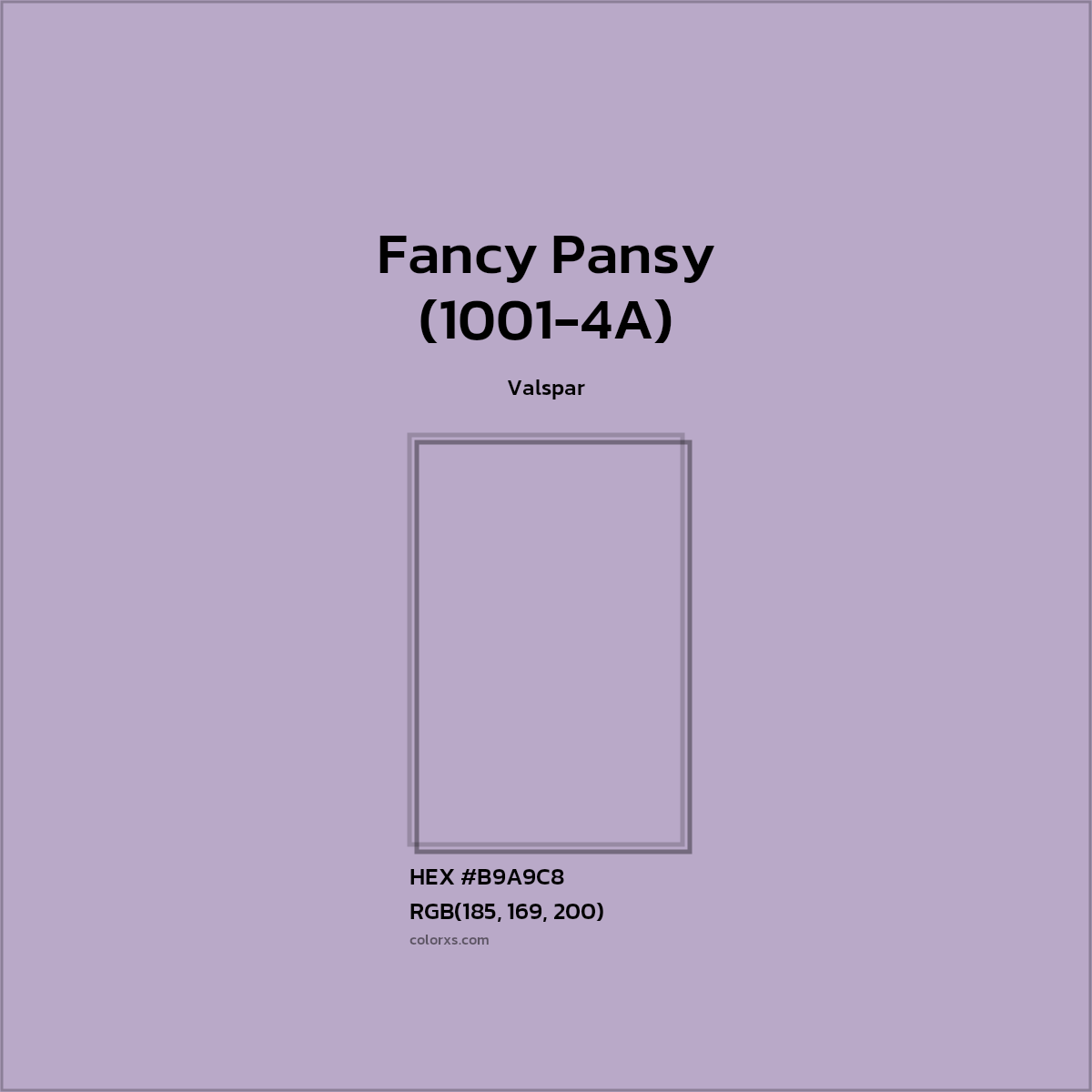 Fancy Pansy (1001-4A) color belongs to the purple color family (hue). The hexadecimal color code(color number) for Fancy Pansy (1001-4A) is #B9A9C8, and the RGB color code is RGB(185, 169, 200).