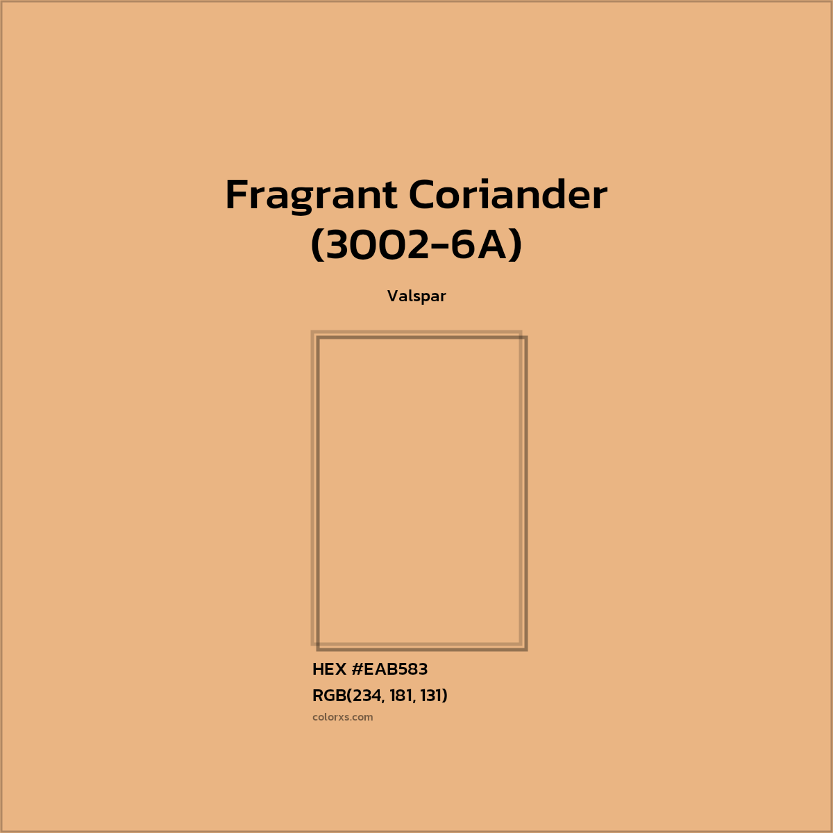 Fragrant Coriander (3002-6A) color belongs to the orange color family (hue). The hexadecimal color code(color number) for Fragrant Coriander (3002-6A) is #EAB583, and the RGB color code is RGB(234, 181, 131).