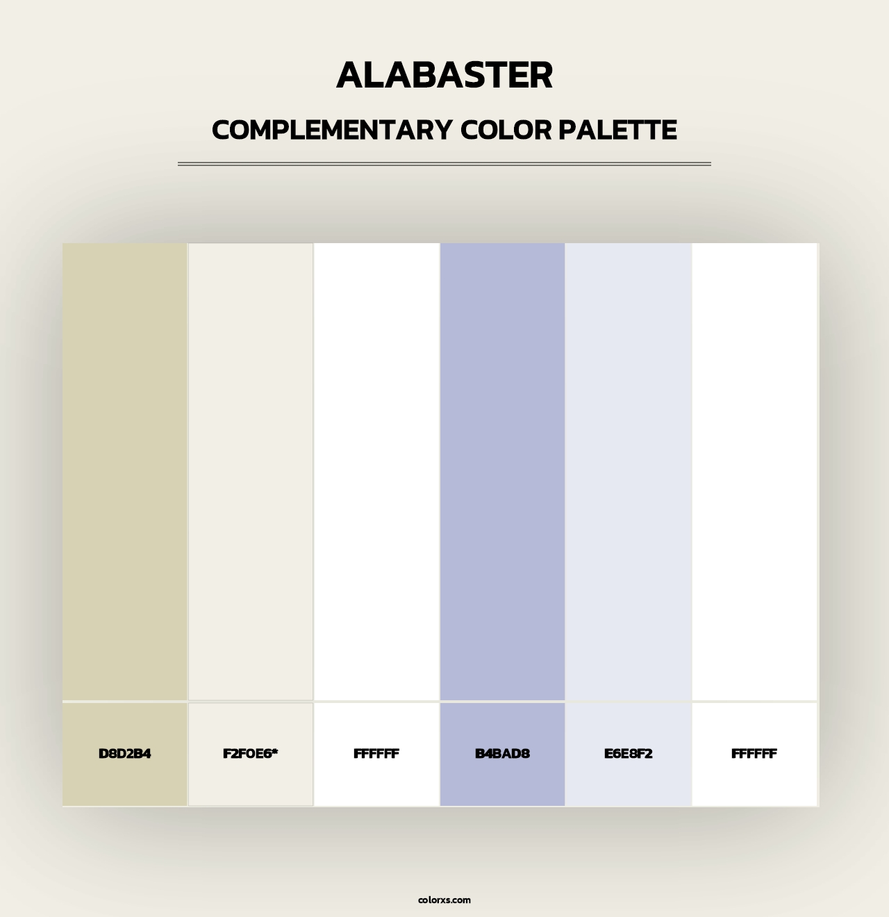 Alabaster color palettes. Find what colors go with Alabaster color palettes. Explore monochromatic, analogous, complementary schemes. Inspiring color palette and combination for your next design.