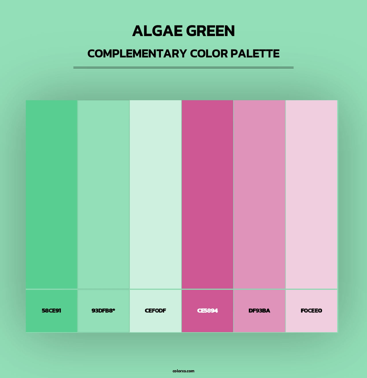 Algae Green color palettes. Find what colors go with Algae Green color palettes. Explore monochromatic, analogous, complementary schemes. Inspiring color palette and combination for your next design.