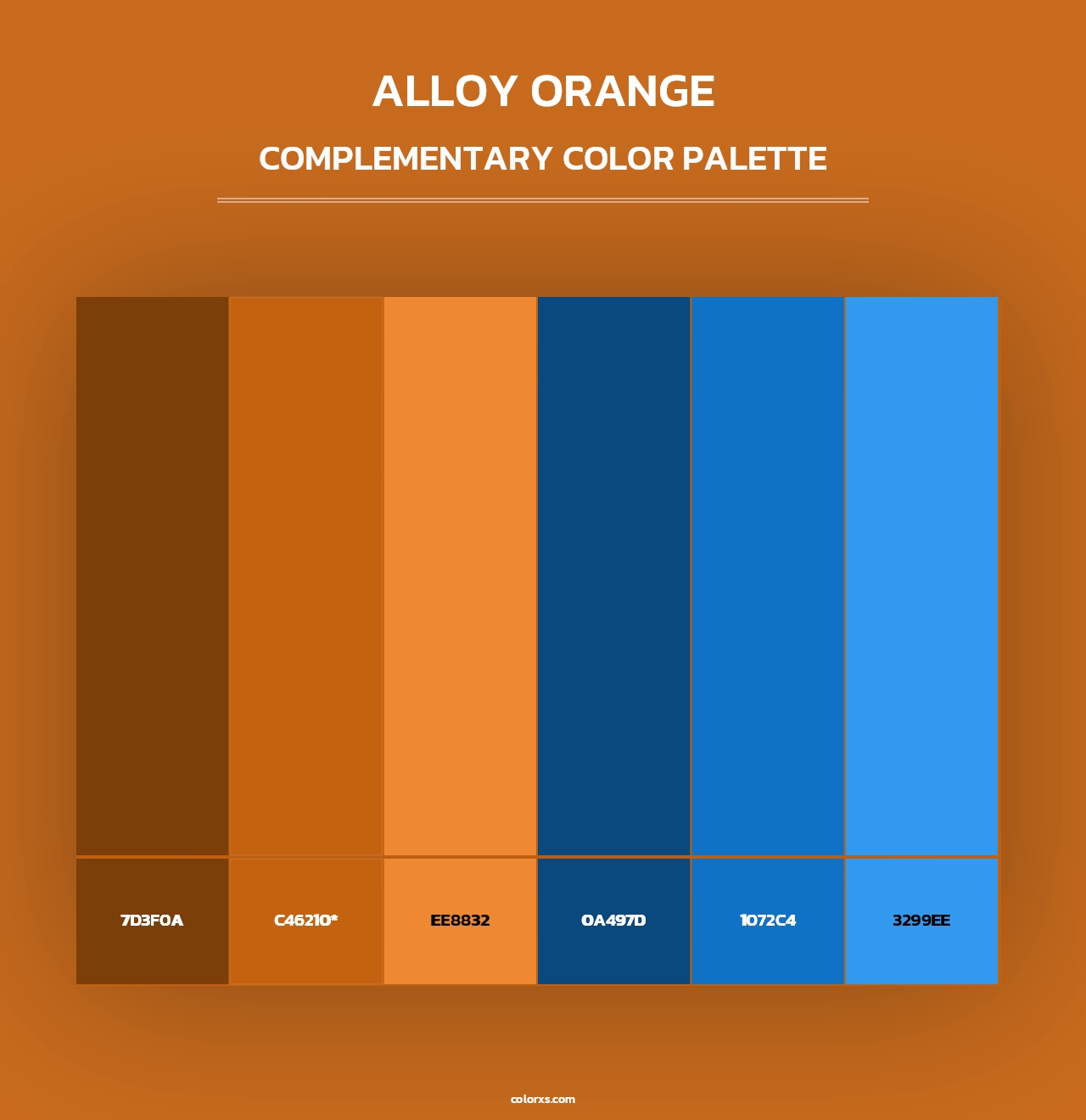 Alloy Orange color palettes. Find what colors go with Alloy Orange color palettes. Explore monochromatic, analogous, complementary schemes. Inspiring color palette and combination for your next design.