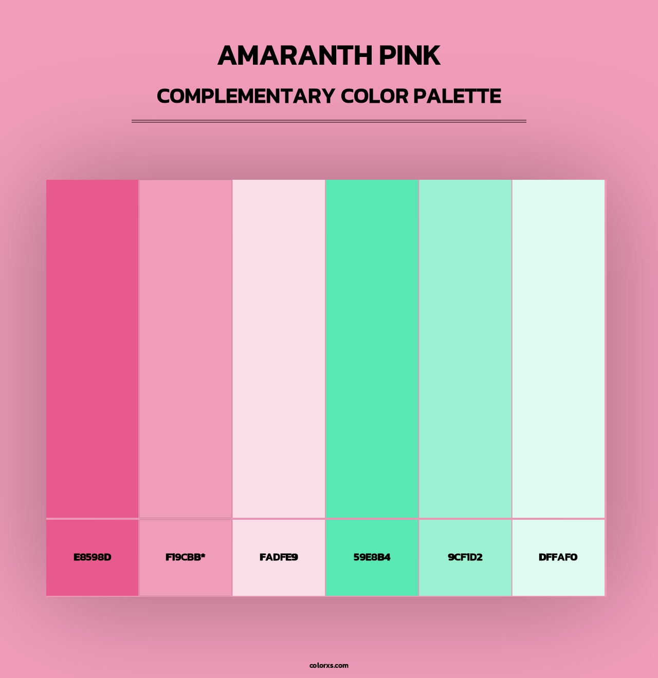 Amaranth Pink color palettes. Find what colors go with Amaranth Pink color palettes. Explore monochromatic, analogous, complementary schemes. Inspiring color palette and combination for your next design.