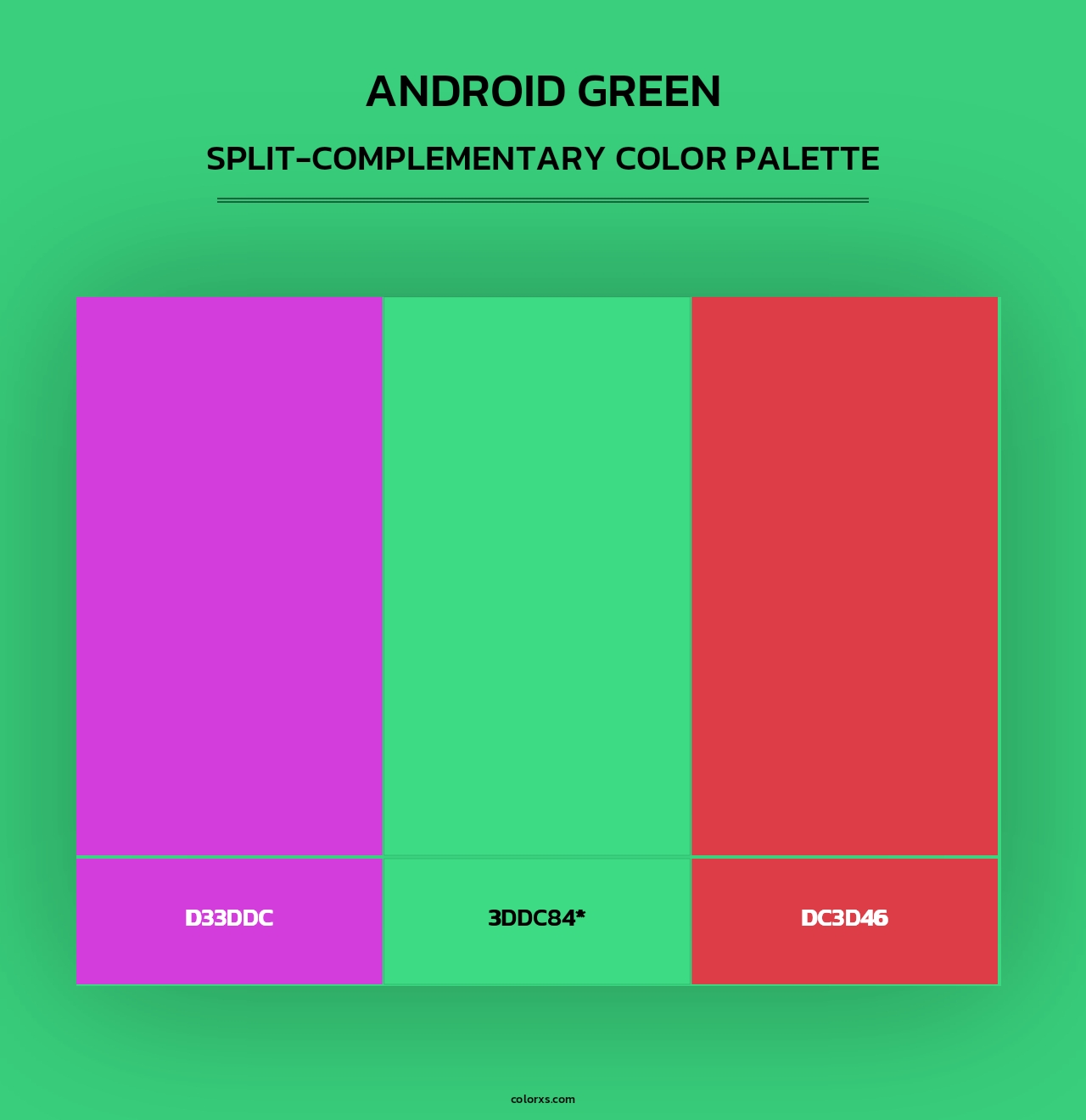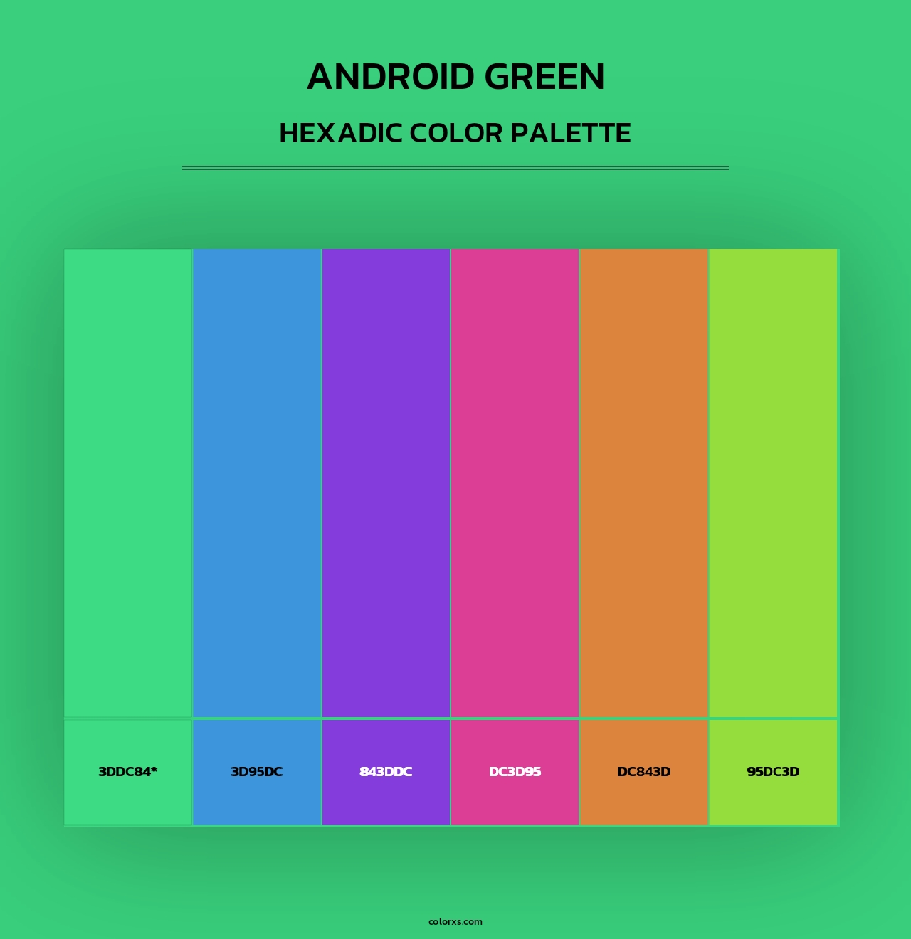 Android Green color palettes. Find what colors go with Android Green color palettes. Explore monochromatic, analogous, complementary schemes. Inspiring color palette and combination for your next design.