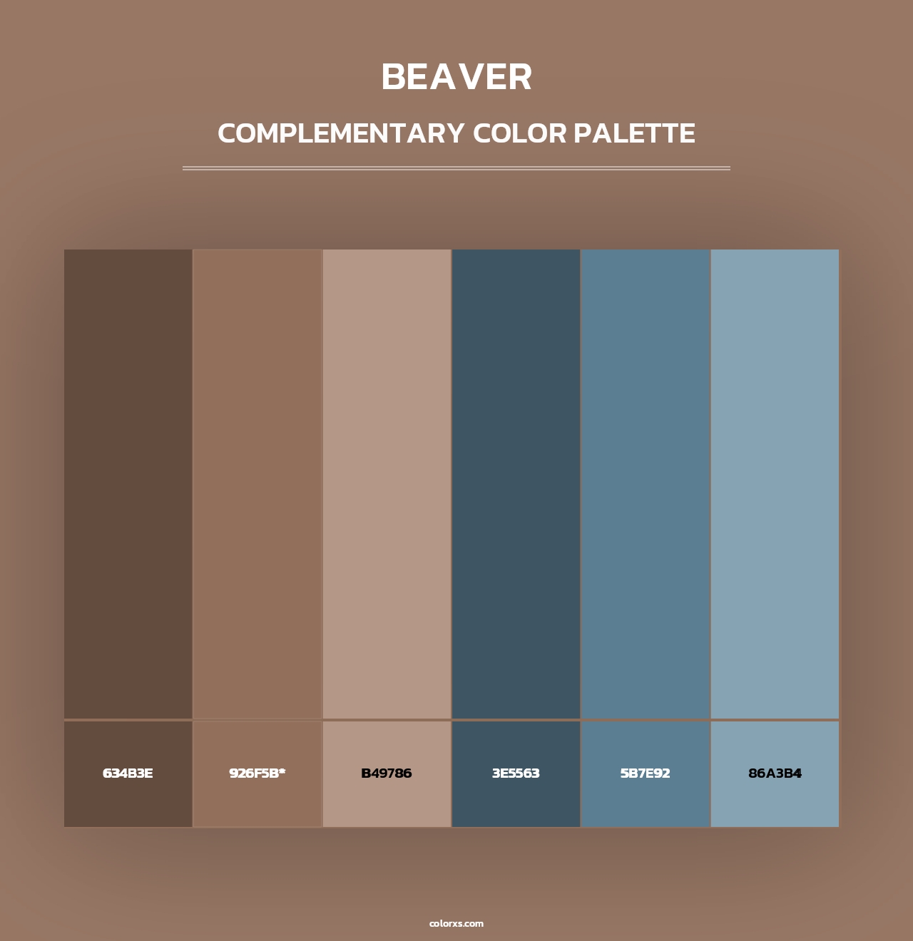 Beaver color palettes. Find what colors go with Beaver color palettes. Explore monochromatic, analogous, complementary schemes. Inspiring color palette and combination for your next design.