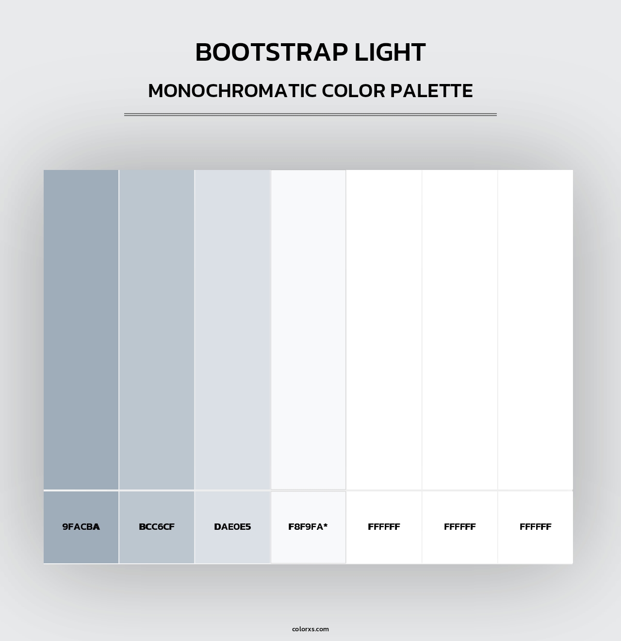 Bootstrap Light color palettes. Find what colors go with Bootstrap Light color palettes. Explore monochromatic, analogous, complementary schemes. Inspiring color palette and combination for your next design.