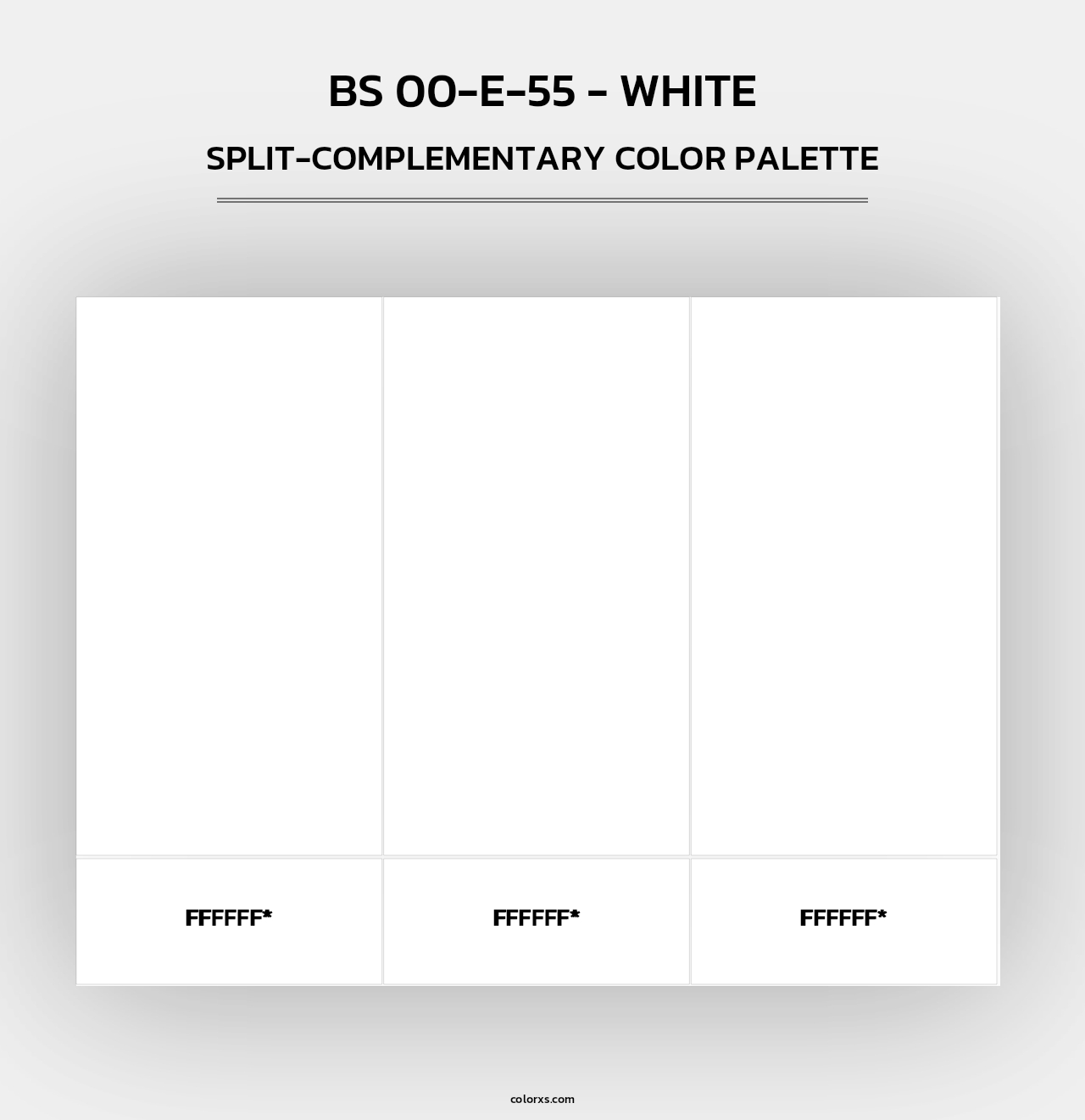 BS 00-E-55 - White color palettes. Find what colors go with BS 00-E-55 - White color palettes. Explore monochromatic, analogous, complementary schemes. Inspiring color palette and combination for your next design.