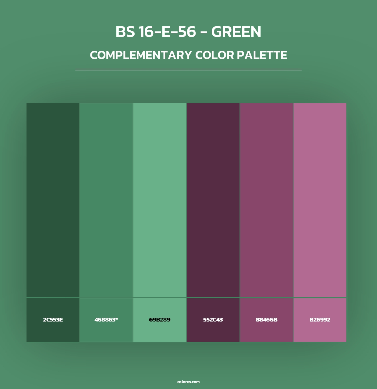 BS 16-E-56 - Green color palettes. Find what colors go with BS 16-E-56 - Green color palettes. Explore monochromatic, analogous, complementary schemes. Inspiring color palette and combination for your next design.