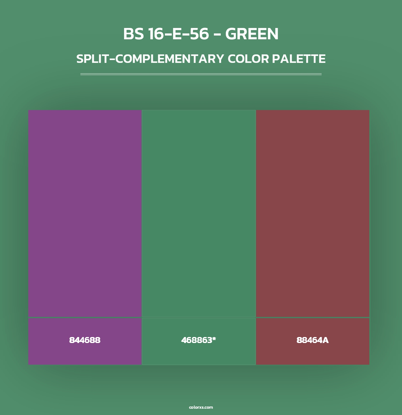 According to split-complementary scheme, color that go with British Standard 4800 BS 16-E-56 - Green