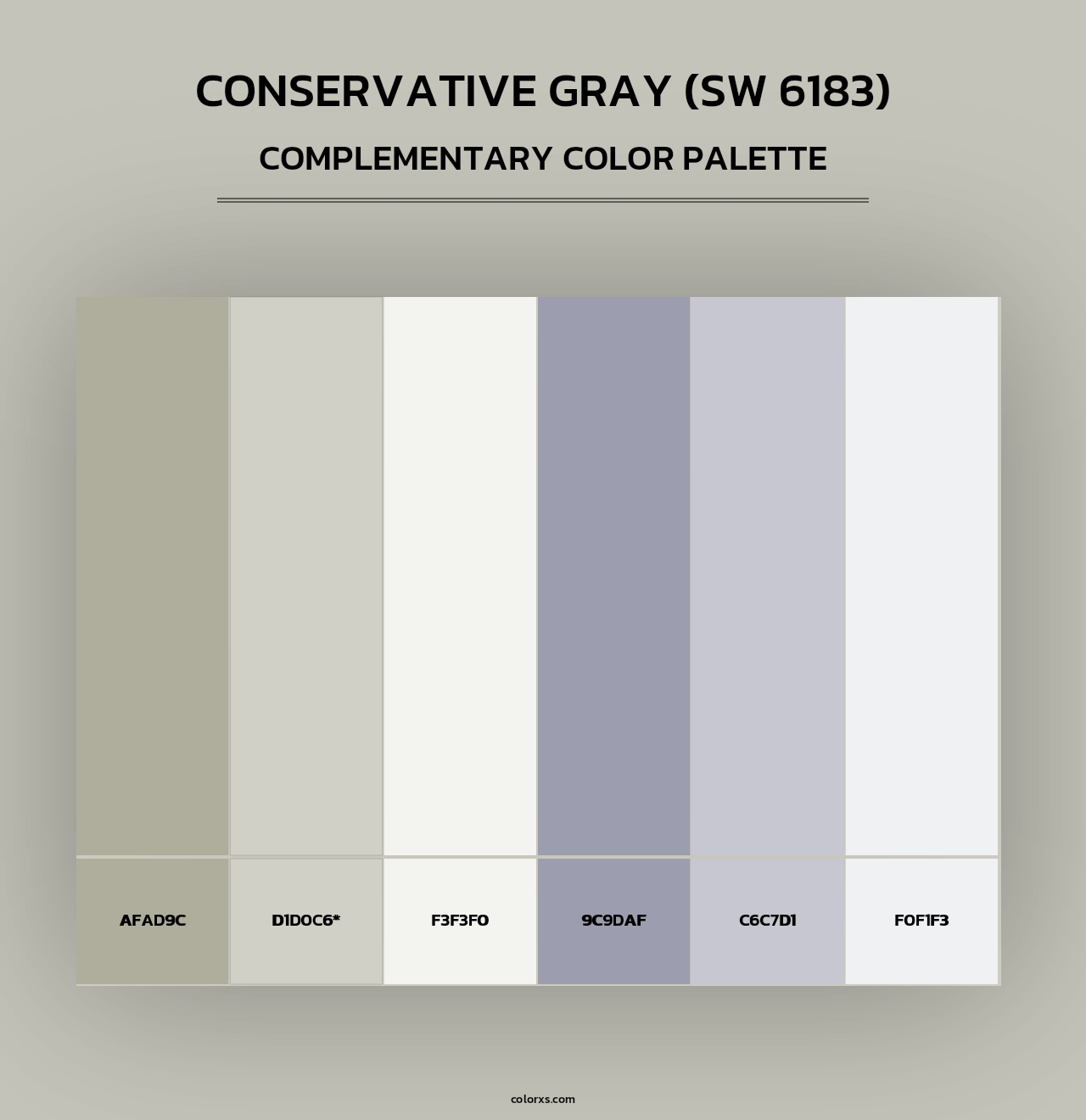 Sherwin Williams Conservative Gray (SW 6183) Paint coordinating colors and palettes . Find what colors go with Sherwin Williams Conservative Gray (SW 6183) Paint coordinating colors and palettes . Explore monochromatic, analogous, complementary schemes. Inspiring color palette and combination for your next design.