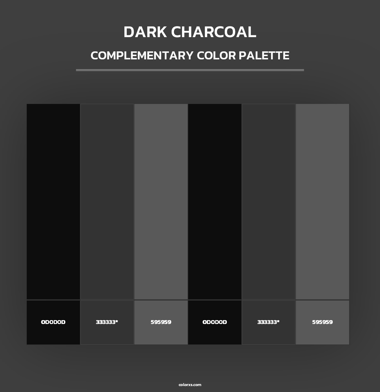 Dark Charcoal color palettes. Find what colors go with Dark Charcoal color palettes. Explore monochromatic, analogous, complementary schemes. Inspiring color palette and combination for your next design.