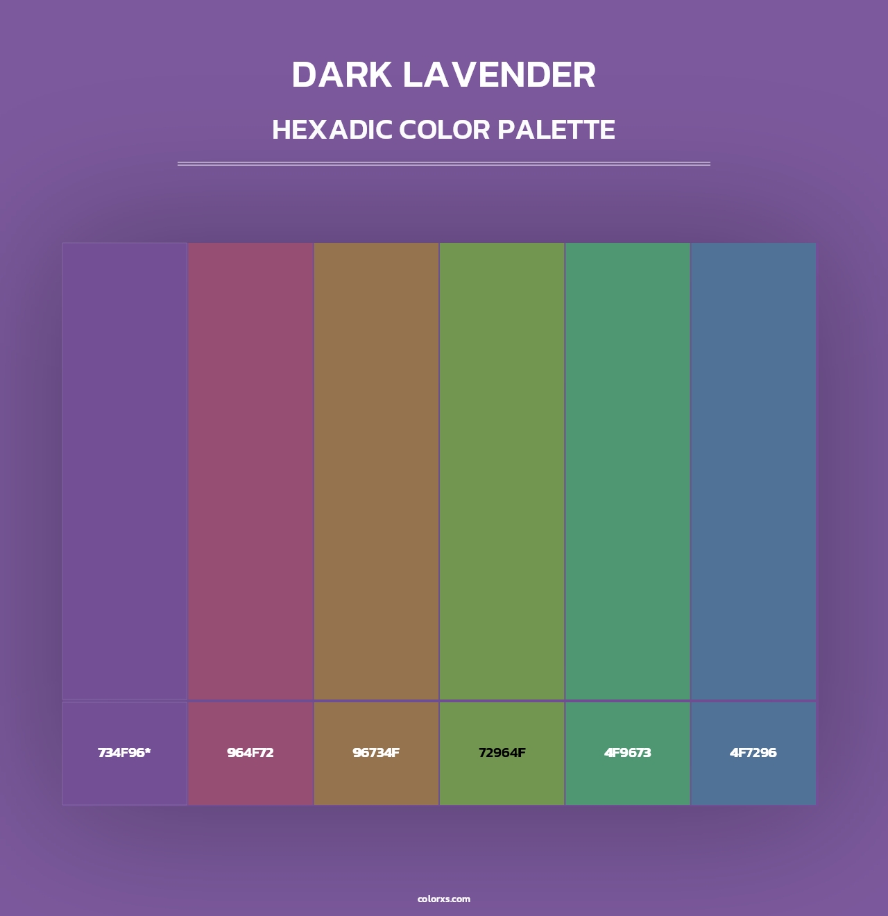 Dark Lavender color palettes. Find what colors go with Dark Lavender color palettes. Explore monochromatic, analogous, complementary schemes. Inspiring color palette and combination for your next design.