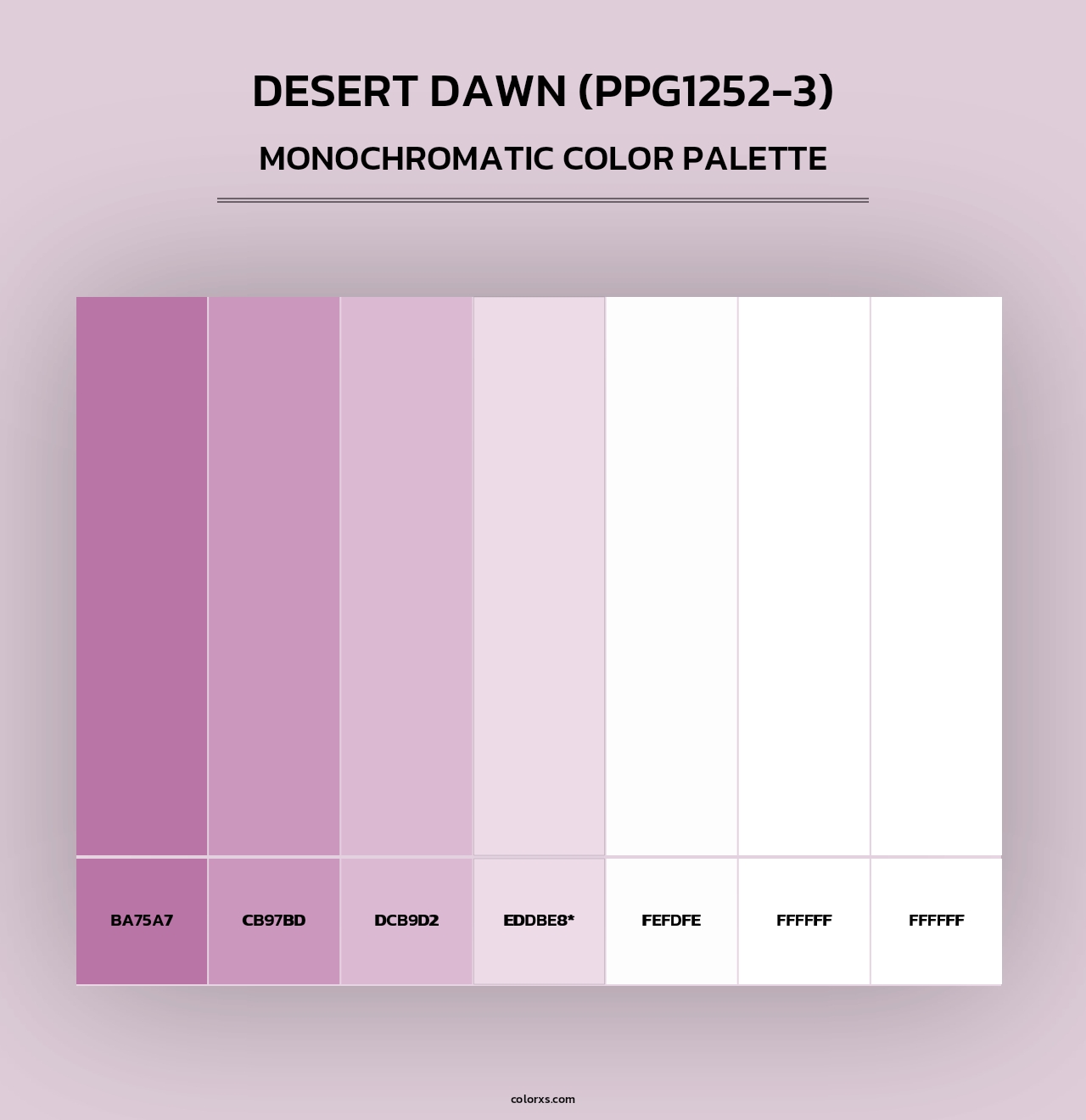 PPG Paints Desert Dawn (PPG1252-3) Paint coordinating colors and palettes . Find what colors go with PPG Paints Desert Dawn (PPG1252-3) Paint coordinating colors and palettes . Explore monochromatic, analogous, complementary schemes. Inspiring color palette and combination for your next design.