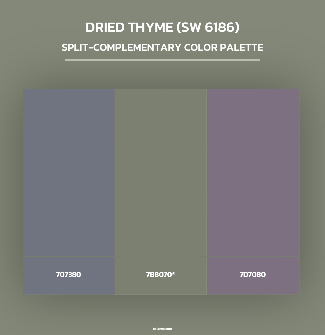 Sherwin Williams Dried Thyme (SW 6186) Paint coordinating colors and palettes . Find what colors go with Sherwin Williams Dried Thyme (SW 6186) Paint coordinating colors and palettes . Explore monochromatic, analogous, complementary schemes. Inspiring color palette and combination for your next design.
