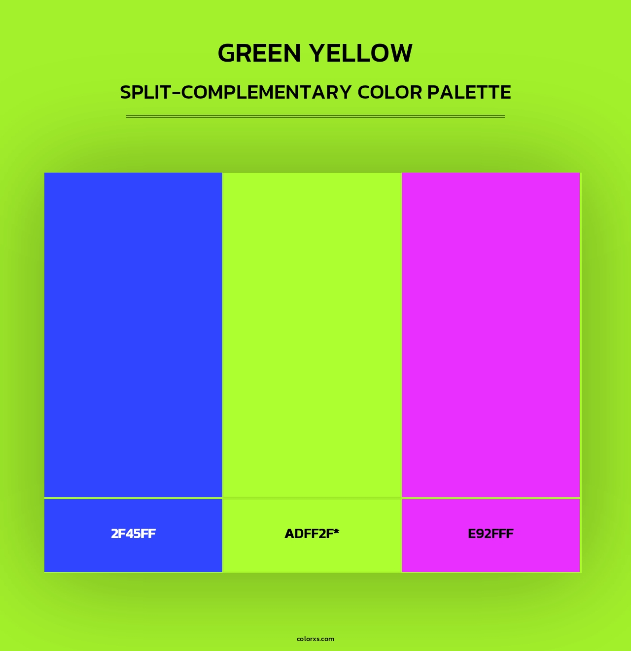 Green Yellow color palettes. Find what colors go with Green Yellow color palettes. Explore monochromatic, analogous, complementary schemes. Inspiring color palette and combination for your next design.