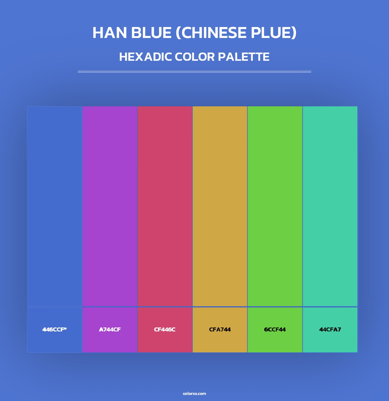 Han Blue (Chinese Plue) color palettes. Find what colors go with Han Blue (Chinese Plue) color palettes. Explore monochromatic, analogous, complementary schemes. Inspiring color palette and combination for your next design.